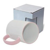 "Czysty" kubek z różowym uszkiem do wykonywania nadruków w technologii sublimacji z kartonikiem