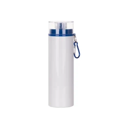 Bidon aluminiowy 850 ml biały z przezroczystą zakrętką i niebieską pokrywką do sublimacji