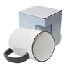 "Czysty" kubek z czarnym uszkiem do wykonywania nadruków w technologii sublimacji z kartonikiem