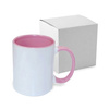 "Czysty" kubek z wnętrzem i uszkiem w kolorze różowym do wykonywania nadruków w technologii sublimacji z kartonikiem