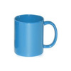 "Czysty" kubek plastikowy z wnętrzem i uszkiem w kolorze błękitnym do wykonywania nadruków w technologii sublimacji z kartonikiem