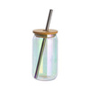 Szklanka 400 ml ze słomką i bambusową pokrywką do sublimacji - szkło galwanizowane