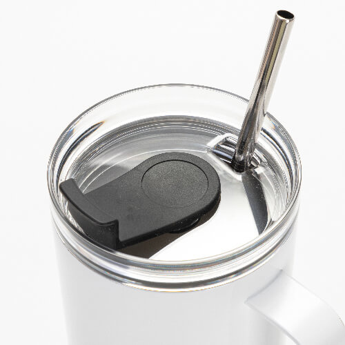 Kubek podróżny ze stali nierdzewnej 1200 ml z pokrywką z silikonową zatyczką i słomką do sublimacji - biały