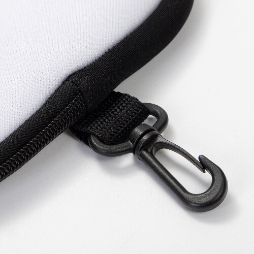 Dzięki karabińczykowi można łatwo przypiąć go do plecaka.