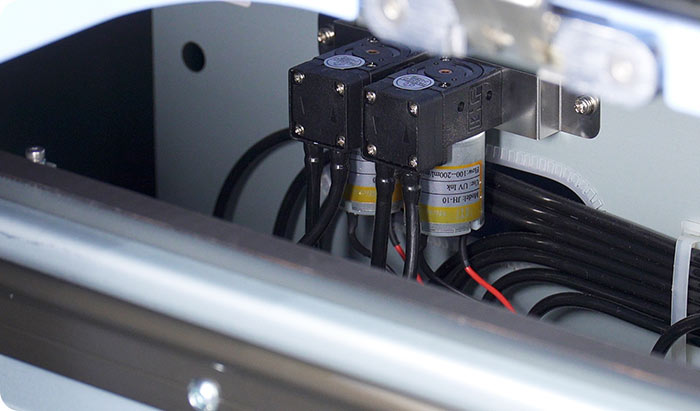 System ten, wyposażony w dwie pompy perystaltyczne, utrzymuje tusz w ciągłym ruchu, redukując ryzyko zatkania się pojemnika z białym tuszem i wydłużając żywotność drukarki UV DTF.