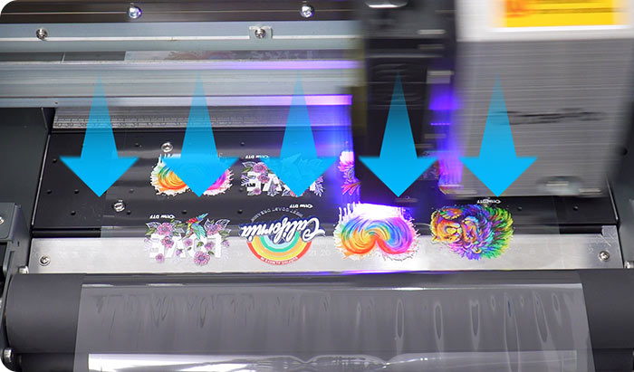Wbudowane lampy ultrafioletowe pozwalają na równoczesne drukowanie i utwardzanie, a wydruki są gotowe do laminowania.