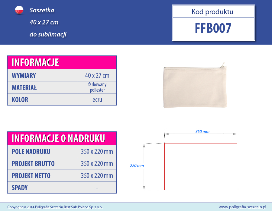 Saszetka do wykonywania nadruków w technologii sublimacji. Saszetka zamykana na zamek błyskawiczny.