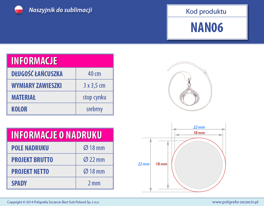 - Pole nadruku: Ø 18 mm