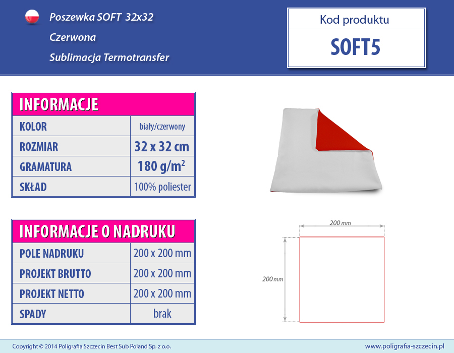 Poszewka SOFT - tył w kolorze czerwonym - do wykonywania nadruków w technologii sublimacji. Do poszewek polecamy dedykowane wypełnienia w atrakcyjnych cenach.
