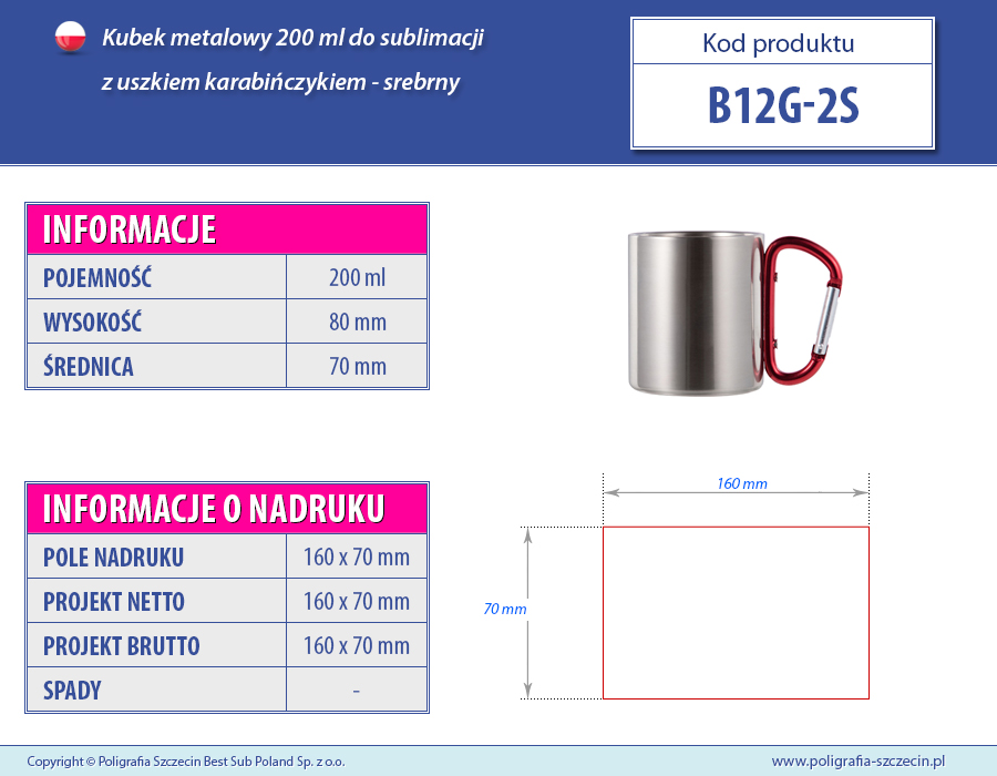 - "Czysty" kubek metalowy z karabińczykiem do wykonywania nadruków w technologii sublimacji